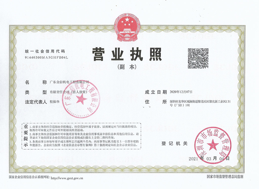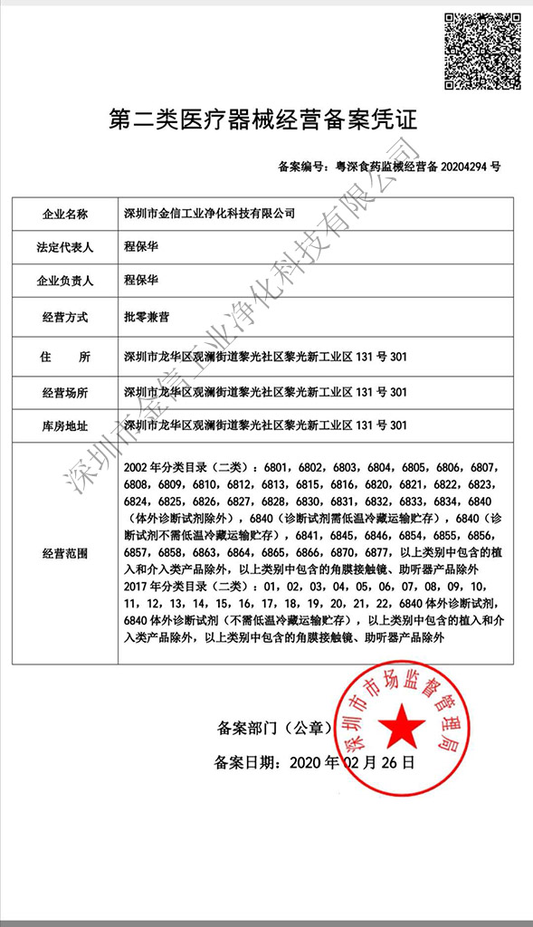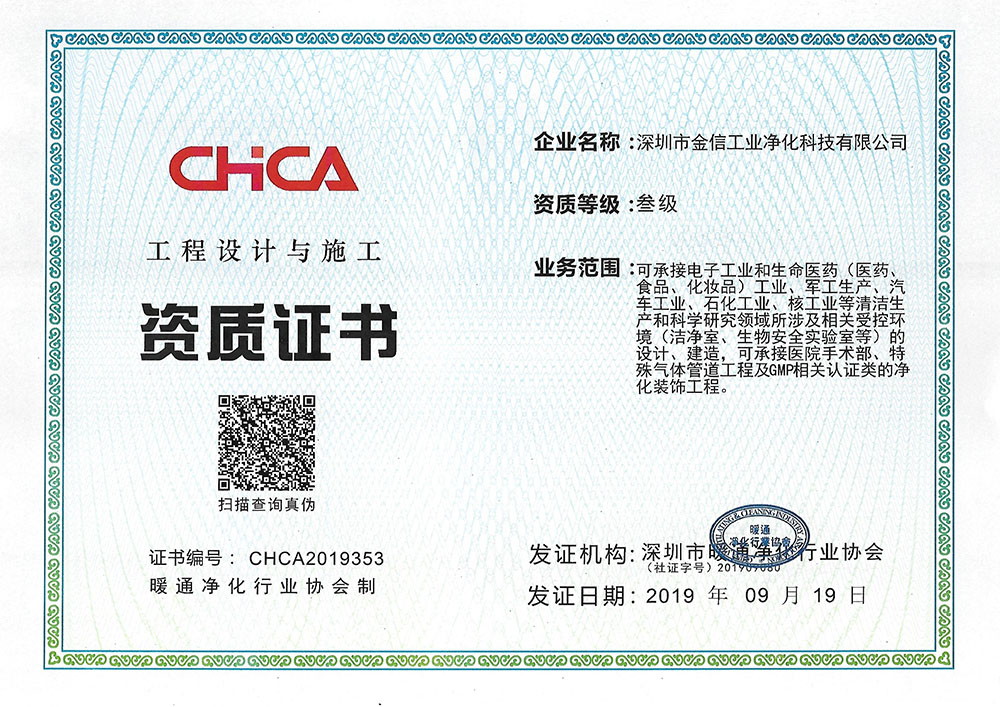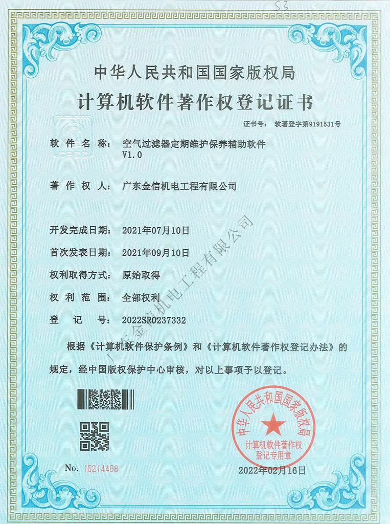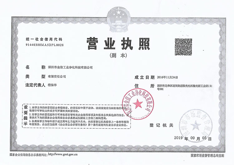 金信機(jī)電營業(yè)執(zhí)照 金信工業(yè)營業(yè)執(zhí)照 建筑機(jī)電三級 安全生產(chǎn)許可 三級工程設(shè)計(jì)與施工資質(zhì) 全國信用試點(diǎn)培育單位 AAA級信用企業(yè) 深圳市暖通凈化會(huì)員單位 全國信用試點(diǎn)培育單位資質(zhì) 中國招投標(biāo)資質(zhì) 醫(yī)療器械備案 AAA誠信經(jīng)營示范單位 AAA企業(yè)信用 AAA質(zhì)量服務(wù)誠信單位 AAA重合同守信用企業(yè) 創(chuàng)新型中小企業(yè) 一種新風(fēng)系統(tǒng)熱交換設(shè)備 一種車間空氣潔凈循環(huán)過濾設(shè)備 一種多層空氣過濾單元的空氣過濾器 一種車間空氣凈化過濾系統(tǒng)設(shè)備 空氣凈化設(shè)備性能自動(dòng)完善軟件 空氣過濾器定期維護(hù)保養(yǎng)輔助軟件 一種組合式易清潔的空氣凈化機(jī)構(gòu) 一種新風(fēng)系統(tǒng)的風(fēng)機(jī)設(shè)備 一種車間設(shè)備安裝的起吊裝置